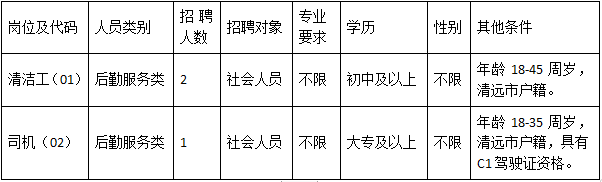 清遠(yuǎn)市清城區(qū)機(jī)關(guān)事務(wù)管理局因工作需要,根據(jù)《關(guān)于印發(fā)<清遠(yuǎn)市清城區(qū)機(jī)關(guān)事業(yè)單位專項(xiàng)工作聘員、合同制聘員以及后勤服務(wù)類人員管理辦法>的通知》(城區(qū)人社〔2022〕20號(hào))文件精神,面向社會(huì)公開招聘后勤服務(wù)類人員3名,現(xiàn)將有關(guān)事宜公告如下: